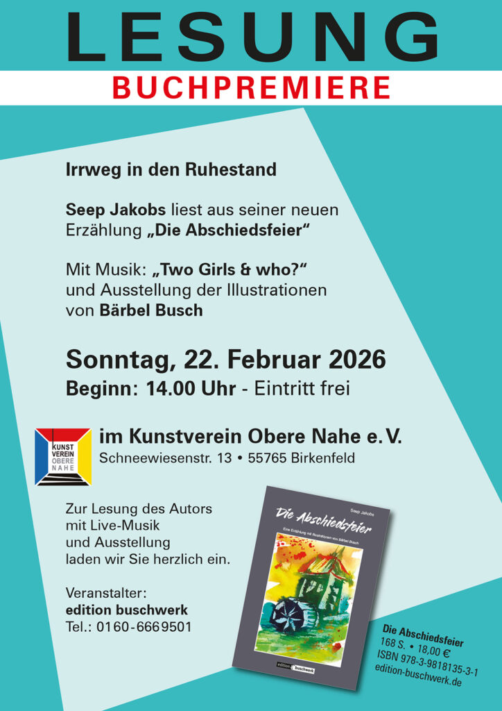 Werk ausstellen. Seep Jakobs wird daraus vorlesen.